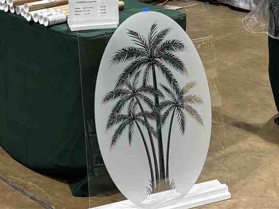 We sell Vinyl Decals with the look of etched glass. They are Removable and Reusable, go on easily only using water. There is no sticky glue or paste residue left on your glass. They are very inexpensive and can last forever. We have many sizes and designs, also Christmas Decals. Come see us at show or look at our website. We will be glad to help you decorate your Doors and Windows.Product Images: