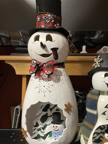 I enjoy passing my time turning used or organic things into display worthy decorations both for inside and out. Gourds are my most popular items whether it be a cute painted birdhouse or a cute snowman, deer, scarecrow or beach design. These are available in electric or battery tea lights.Our garden signs are made from recycled fencing, painted in a various amount of holidays and sport designs. Then we have our painted solar or fairy light recycled wine bottles. We have some smaller items like paddle earrings, some sport magnets and hand painted ornaments. As a company small but productive I do. Most painting and design work with a few people to back me such a friend in MR and a few 4H teens that help now and then. We do accept the challenge of a custom design order. All lMy items are mailable due to their light weight. I hope you can find something that just touches your heart… see ya soon…